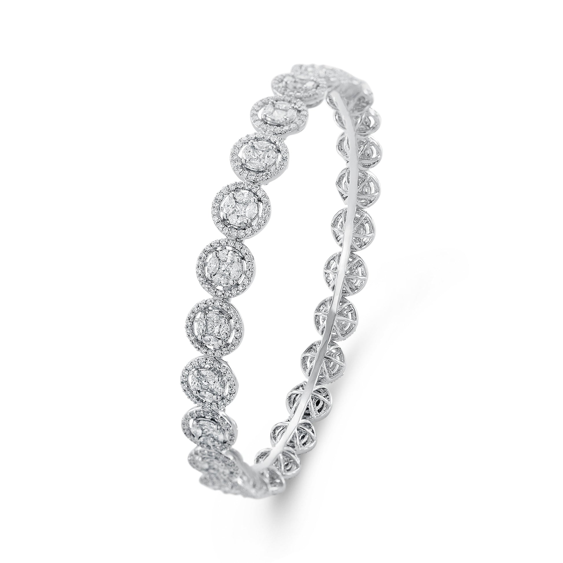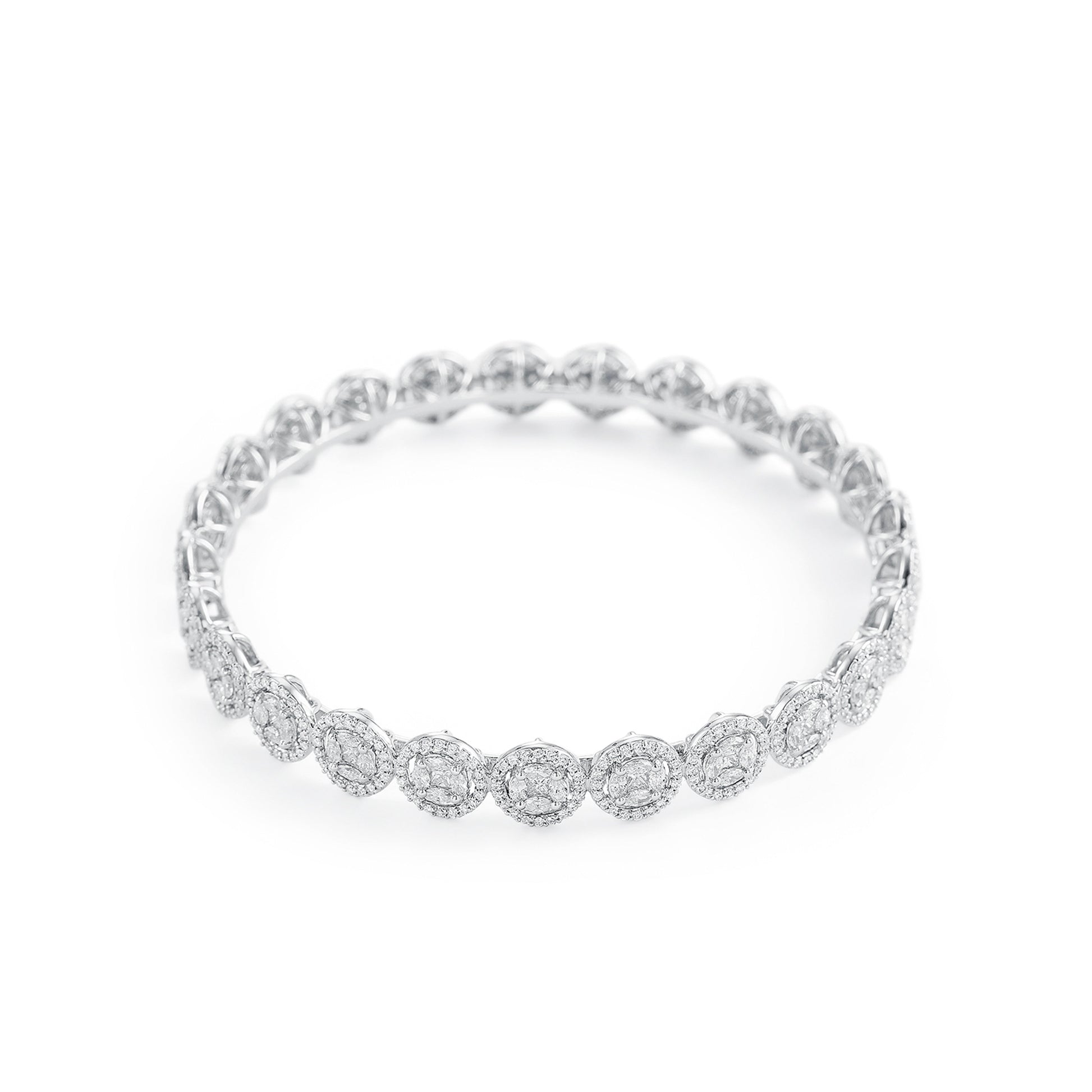 A bunch of Daisies is unusually perfect, have you noticed. This Diamond studded Gold bangle is perfected with the magnificence of a fresh, blooming set of Daisies, uniform is shape, size and form.