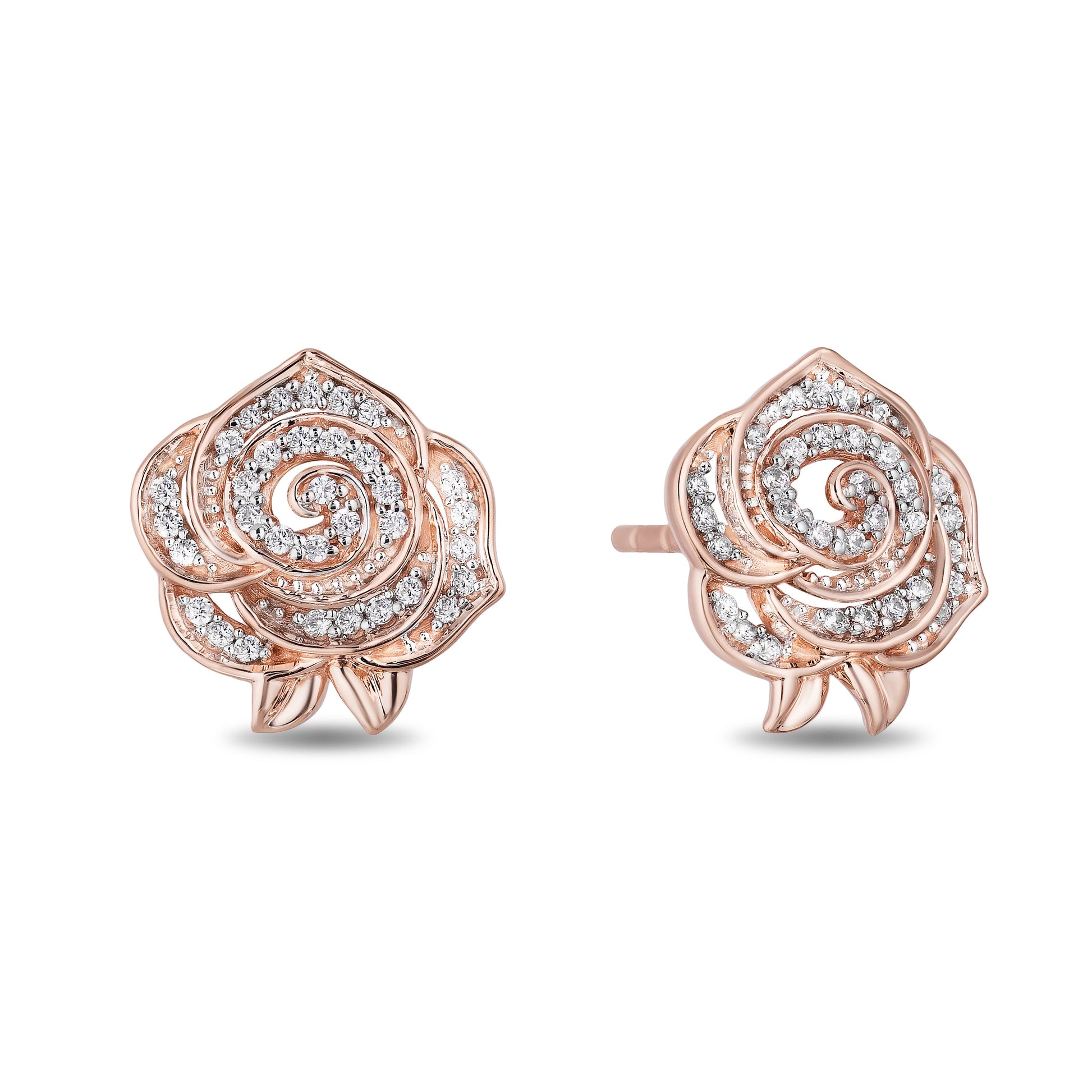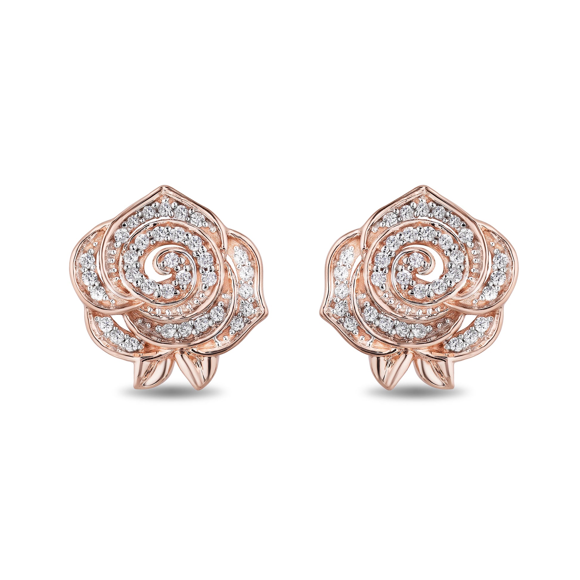 14K Rose Gold Belle Rose Earrings with 1/5 cttw DiamondsWhen given a chance to wear a piece of jewelry with a story, will you take it? Go ahead and retell a tale as old as time with this exquisite pair of Rose Gold Rose Earrings inspired by Belle. Modeled from the iconic rose in Beauty and the Beast, these charming studs are crafted from rose gold and adorned with 1/5 total carat weight of sparkling diamonds. A fab addition to your wardrobe that's guaranteed to make any outfit look extra chic.