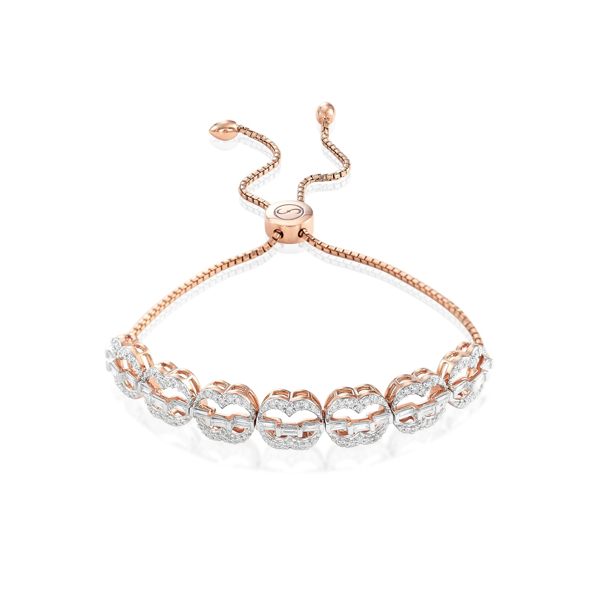 Of rock and ice, the mountains are a shiny affair. Icicles and snow bounce off the magical colours of sunlight in ways impossible to explain. Diamonds, set in White Gold is a similar mirage. This bracelet is named Elsie, after the God of plenty.