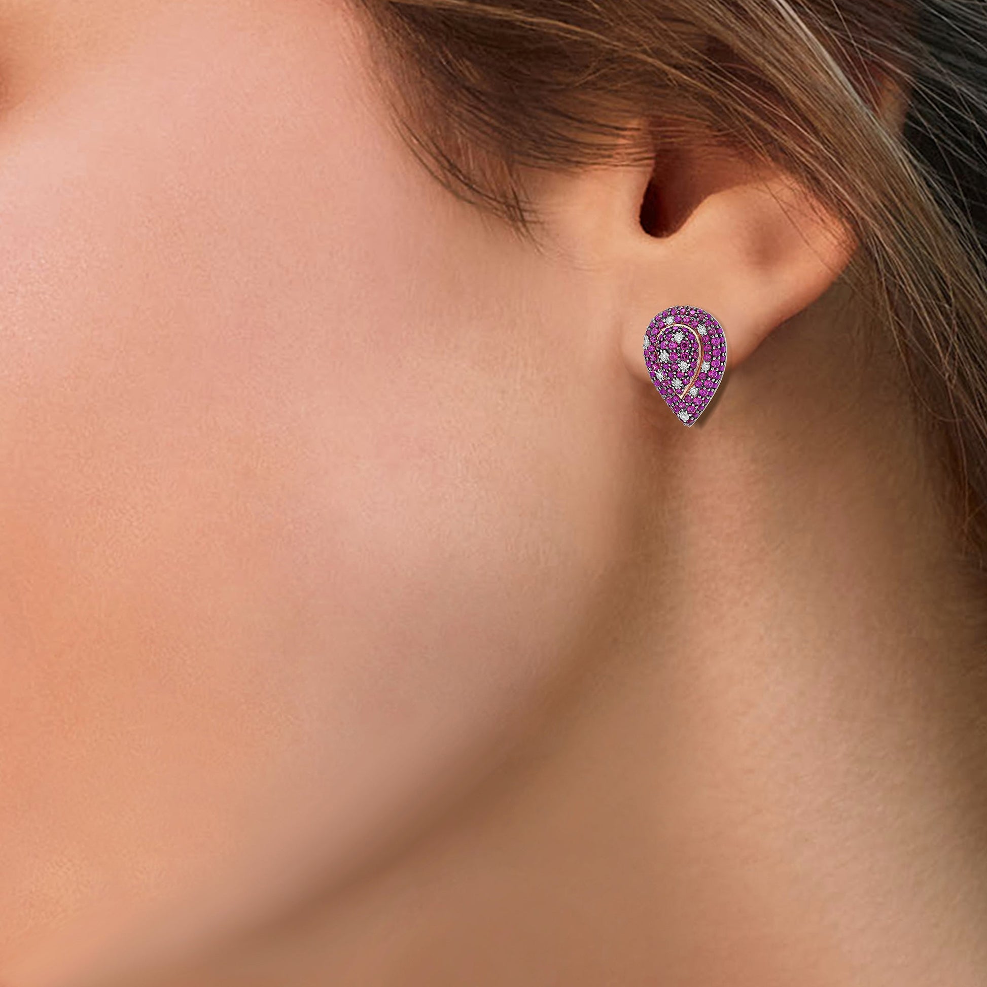 In the world of upside down, droplets are the most beautiful form. Stranded like a pear drop that is about to give birthto another drop, this shape when studded with Rubies and Diamonds is a design apart.