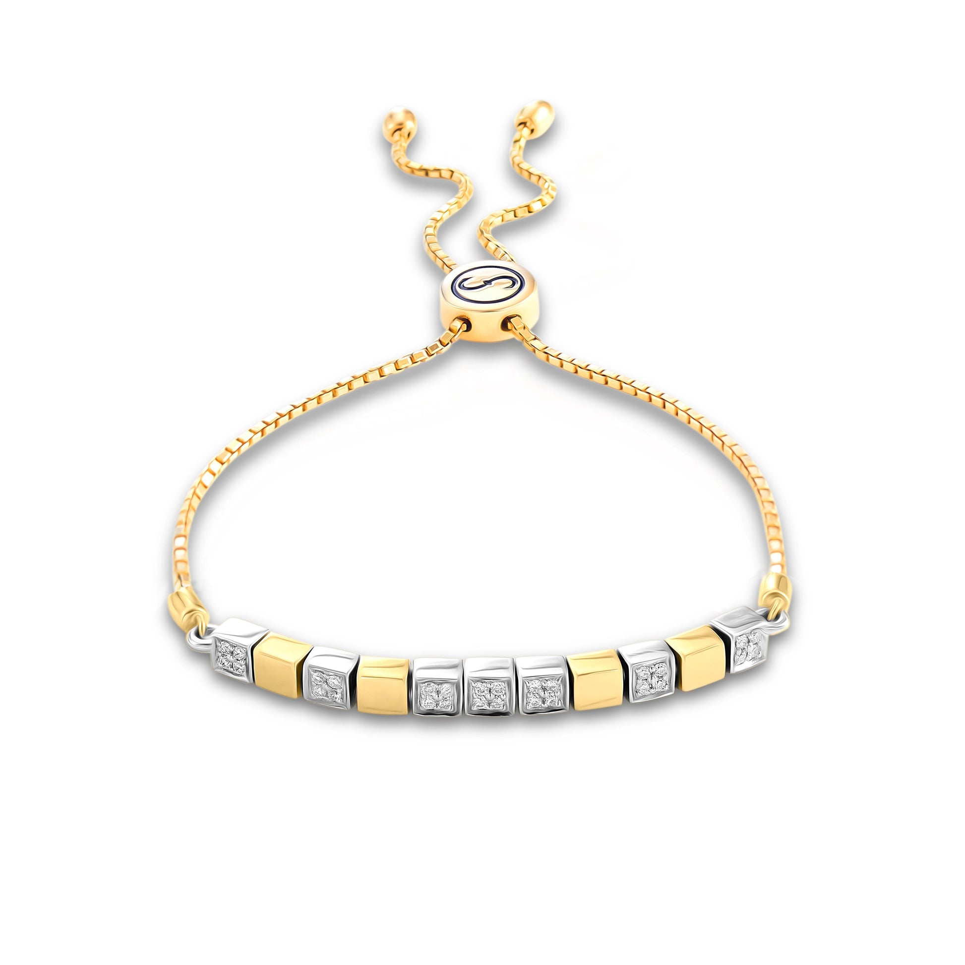 A tranquil set of Diamonds, bunched together with Gold, are placed on the wrist delicately strung together in this bracelet. The light, catching the Diamonds gracefully, with every little movement of the wearer's hands, is but a work of art.