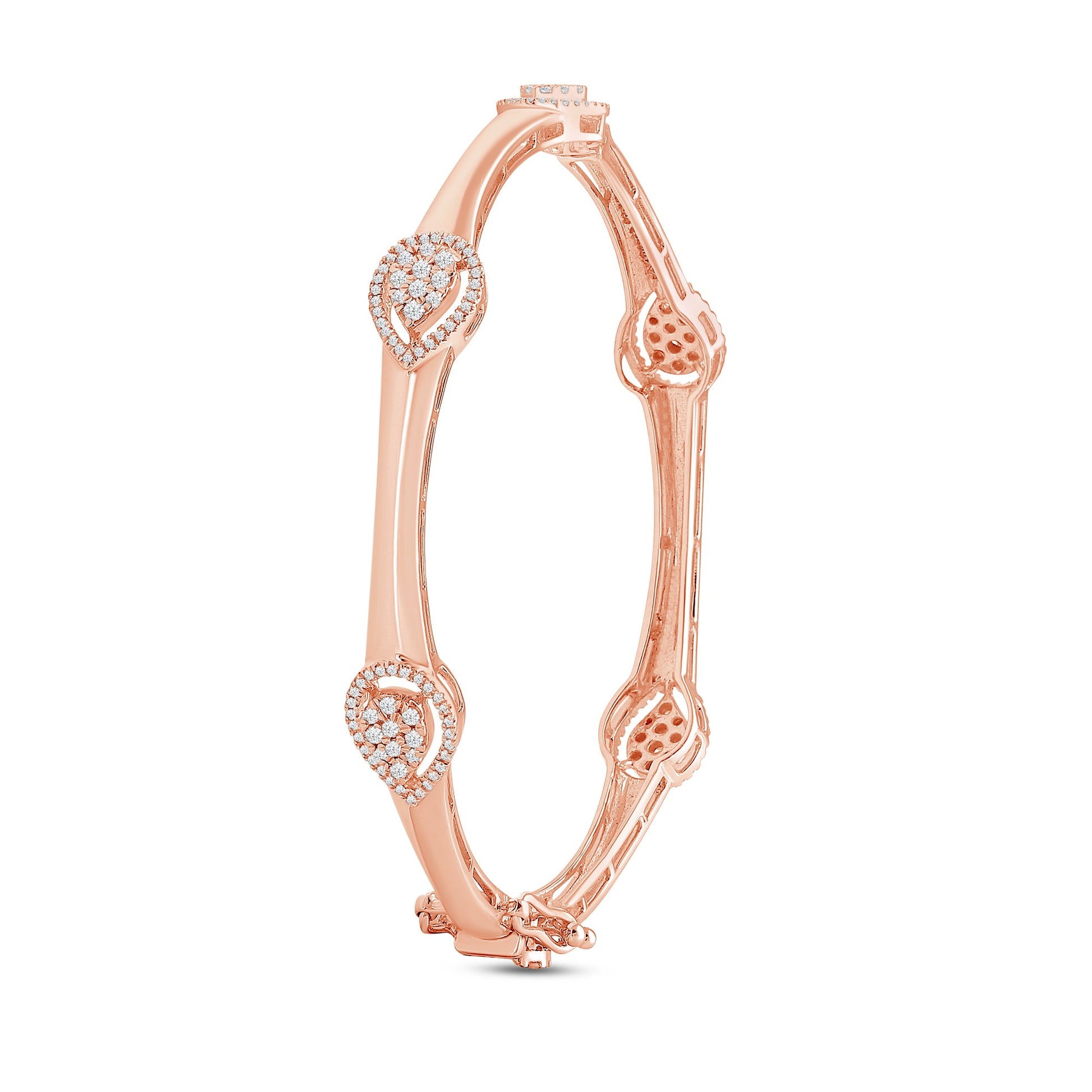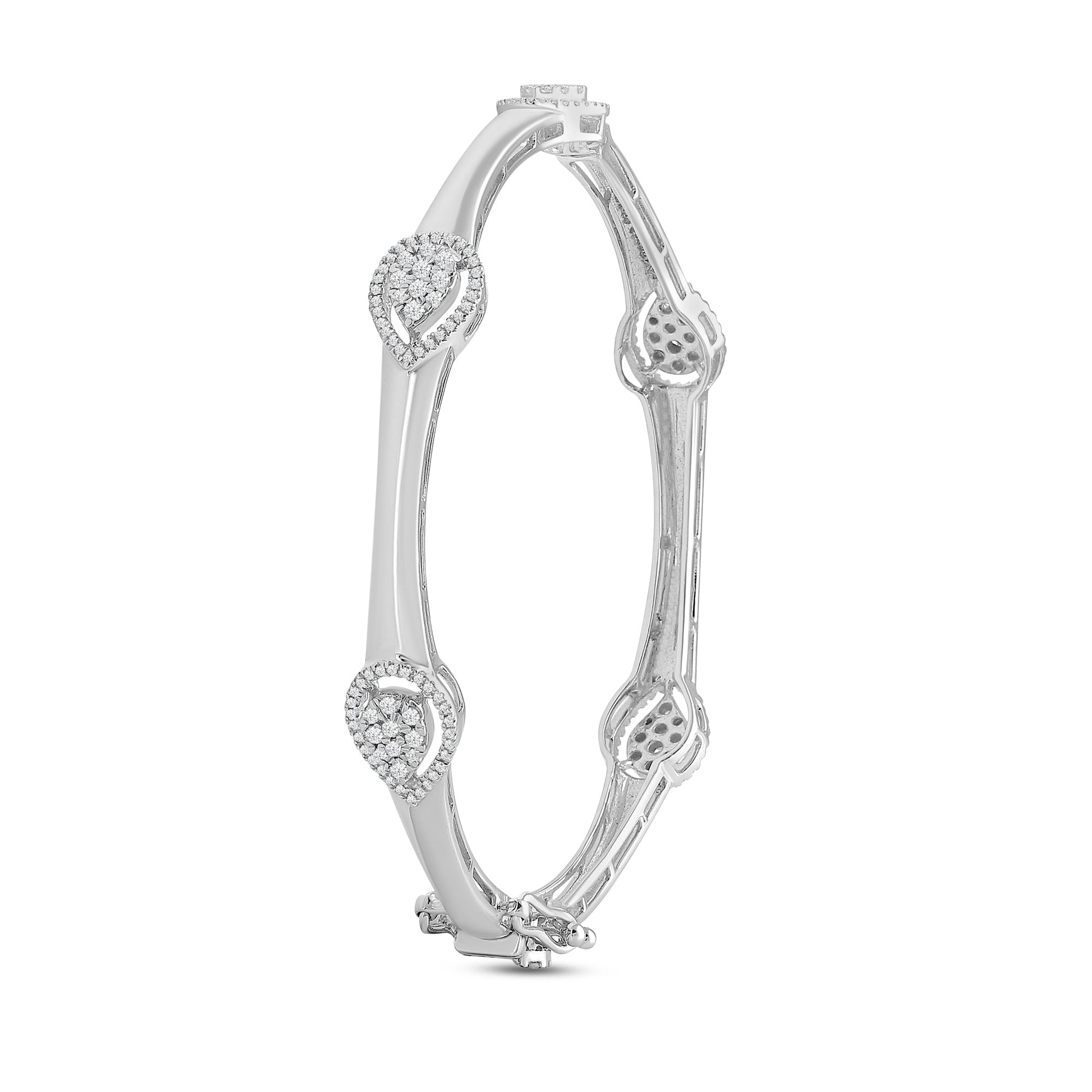 Crafted in luminous white gold, the Mirella Leora Bangle is sculptural excellence. It features a graceful symphony of pear-cut diamonds. The seamless flow of form and sparkle evokes both delicacy and intricacy.