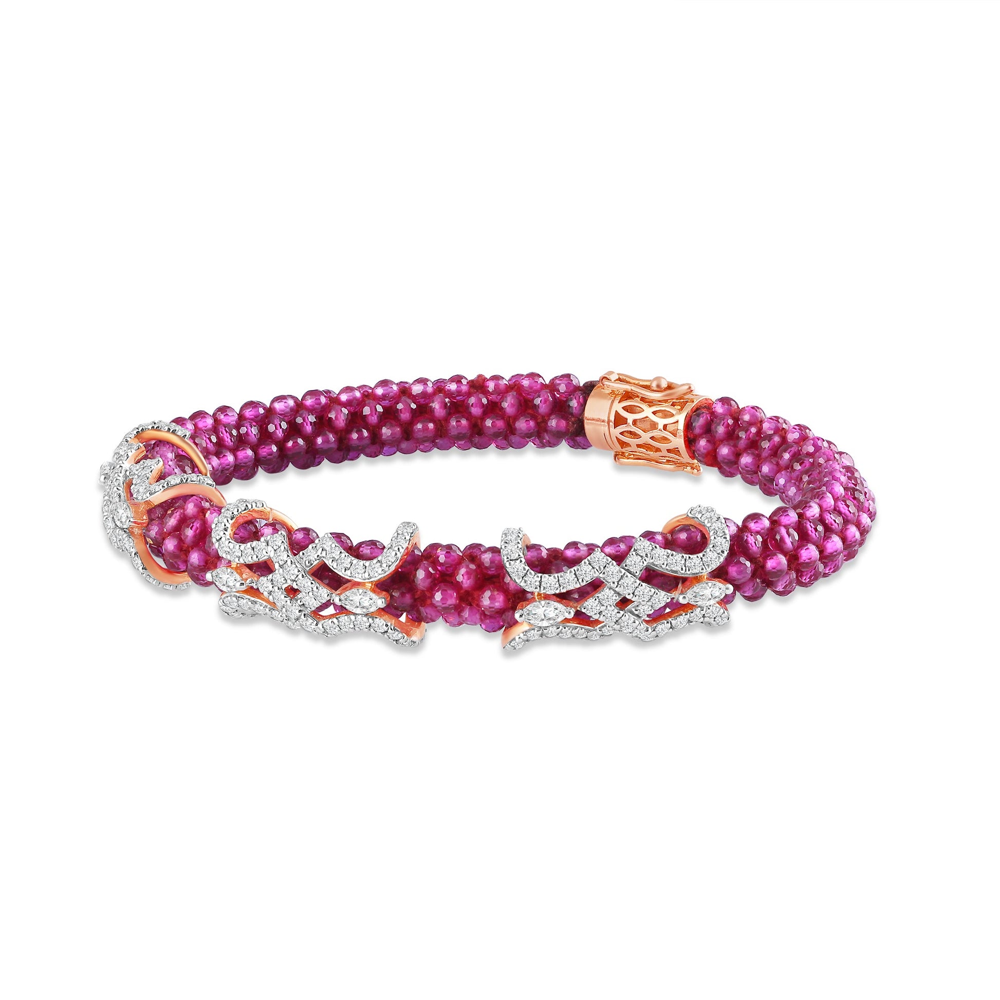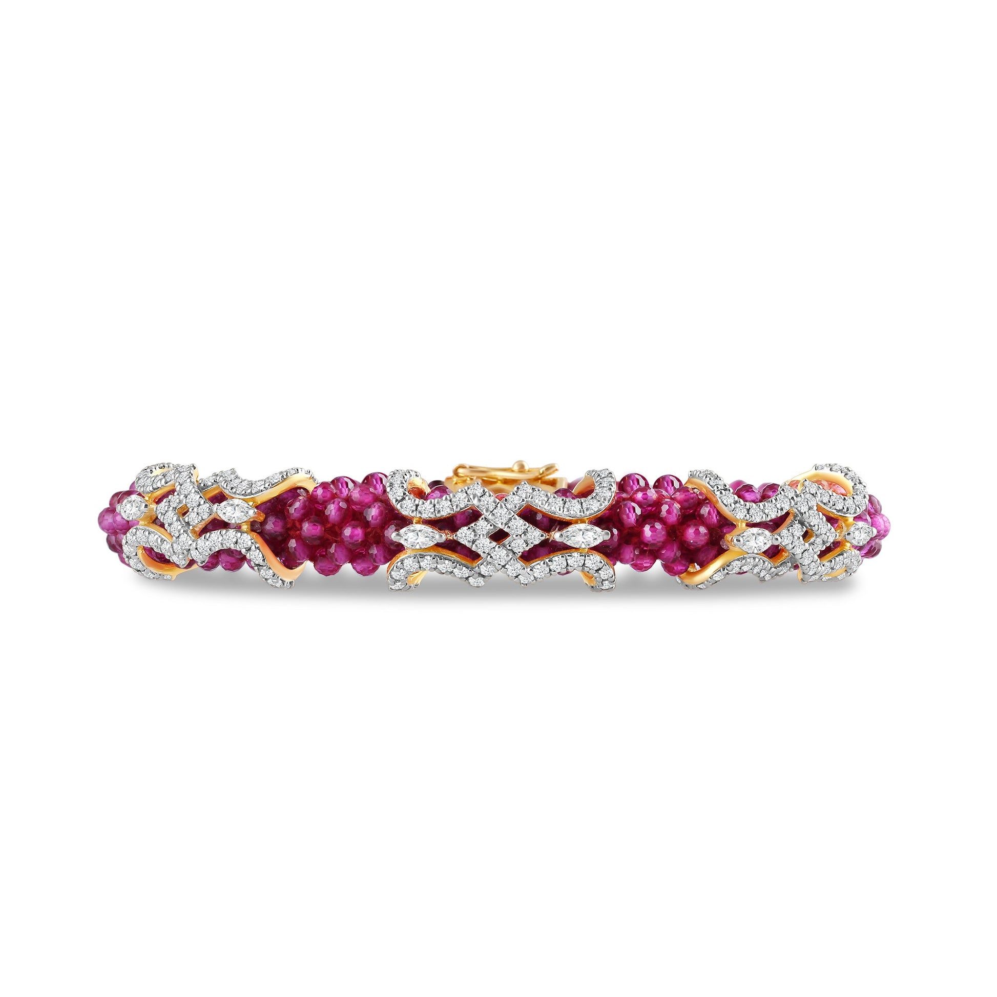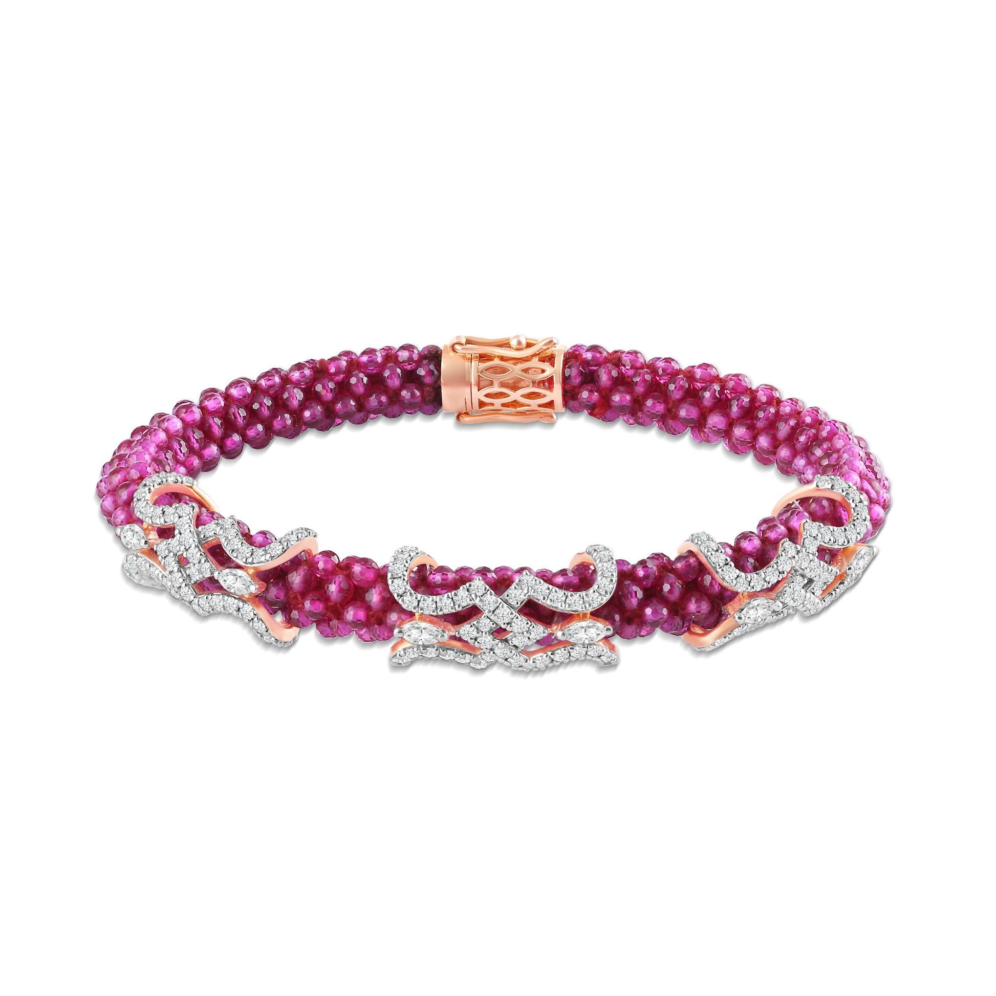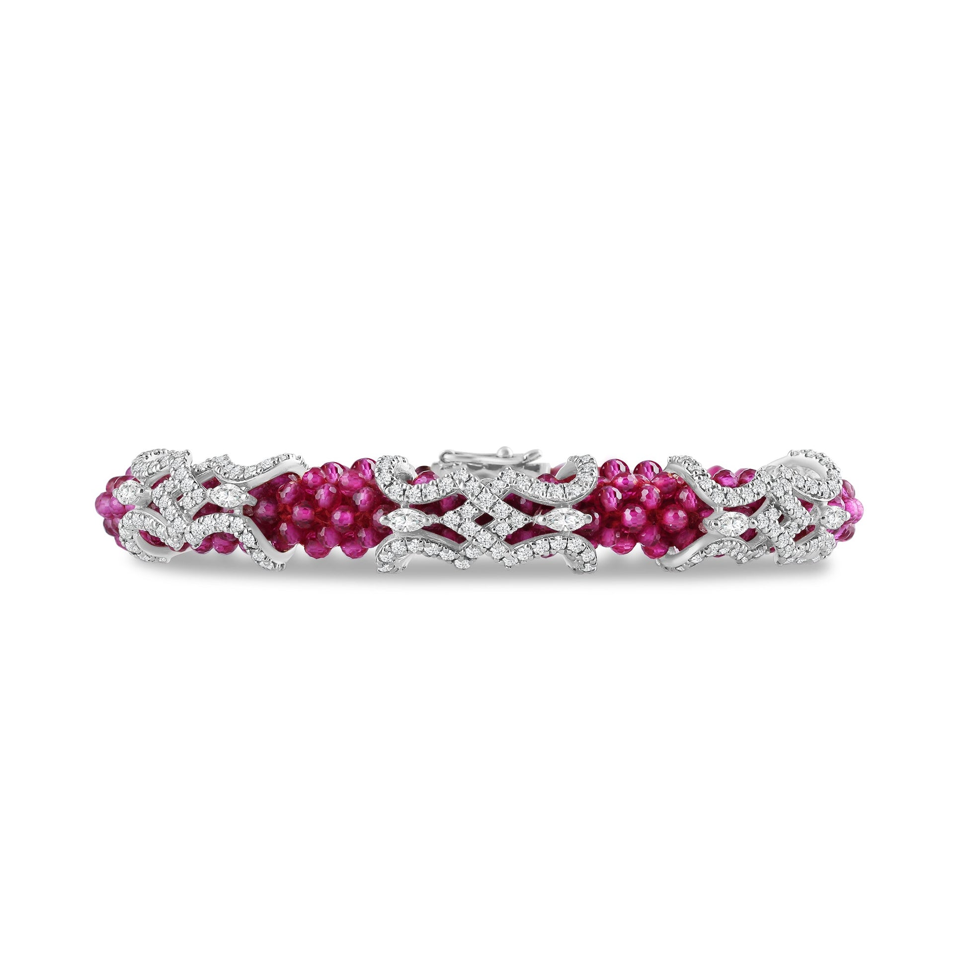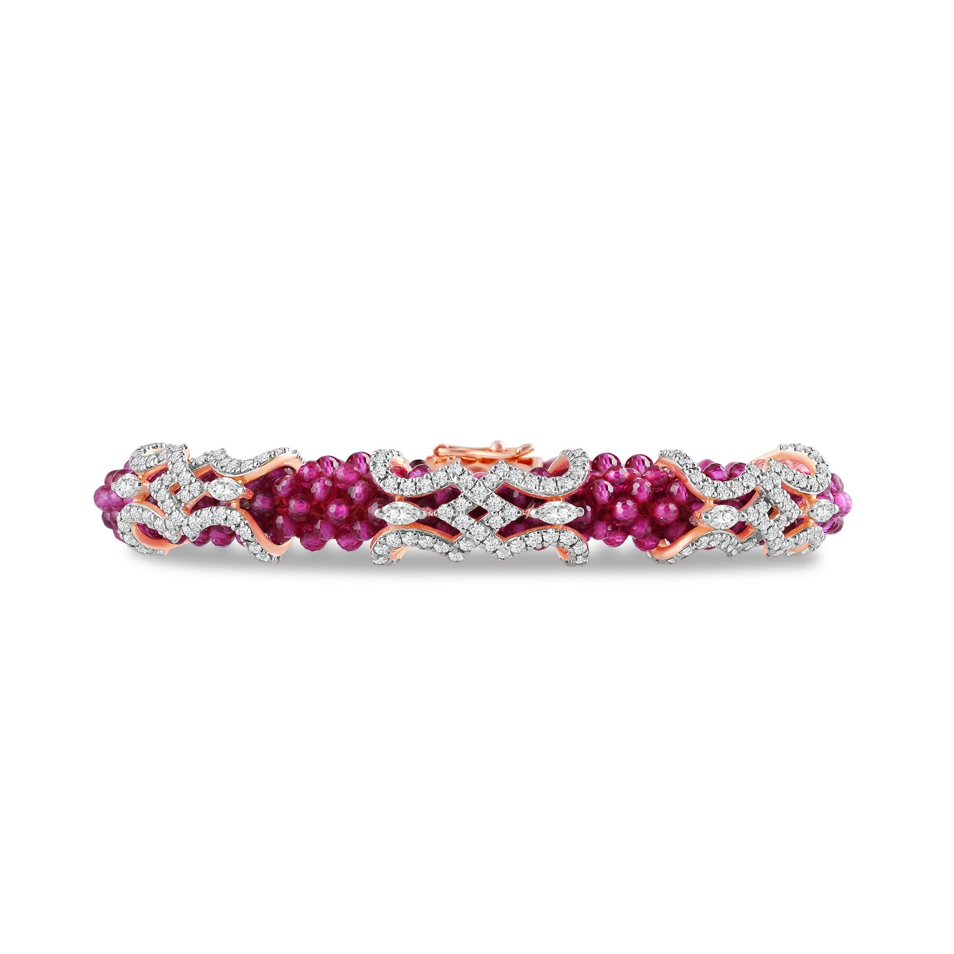This Ornaya Colour Couture Bracelet celebrates a striking interplay of artistry and elegance. Strung with opulent rubies in a braided design, the bracelet features baroque-inspired diamond scrolls. The enthralling piece evokes a modern Renaissance — where colour becomes a statement.