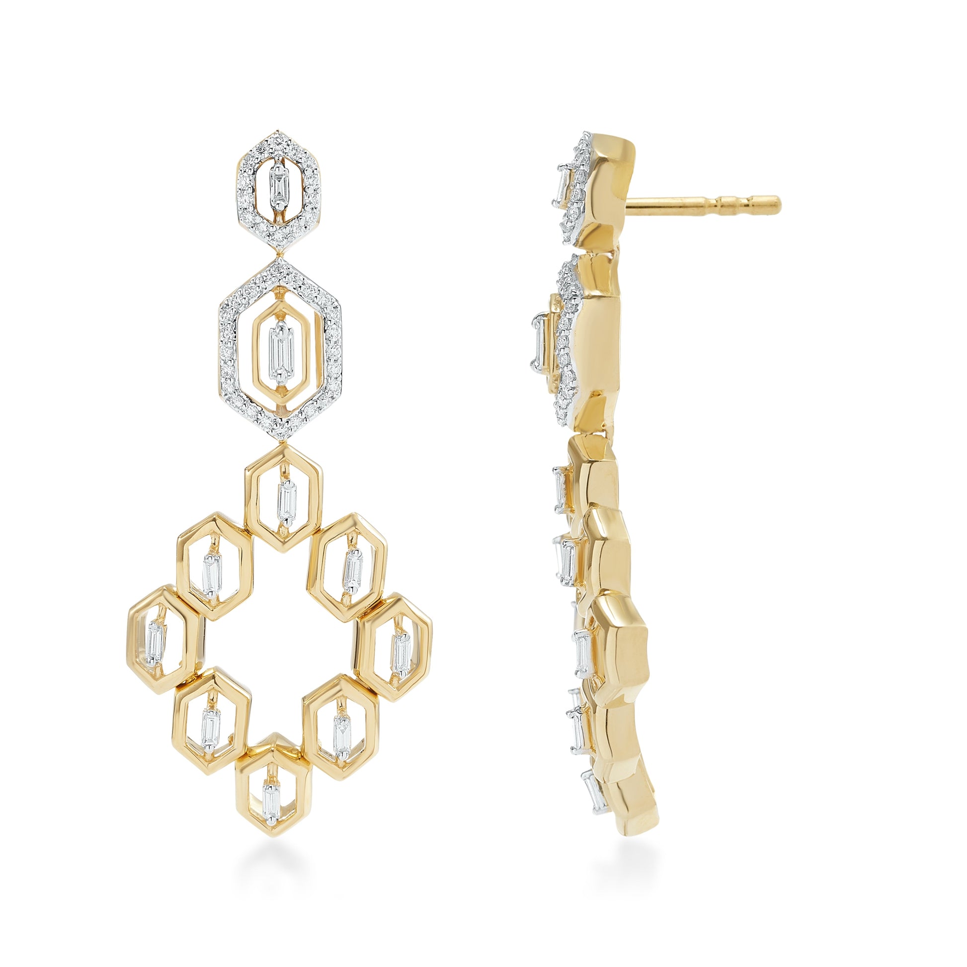 A distinctive ornament at the apex of any pillar, roof, canopy or window, Finial is an architectural name. This pair of earrings, juxtaposed in a way that reverberates openness and envelopment at the same time, is named after this architectural jargon.