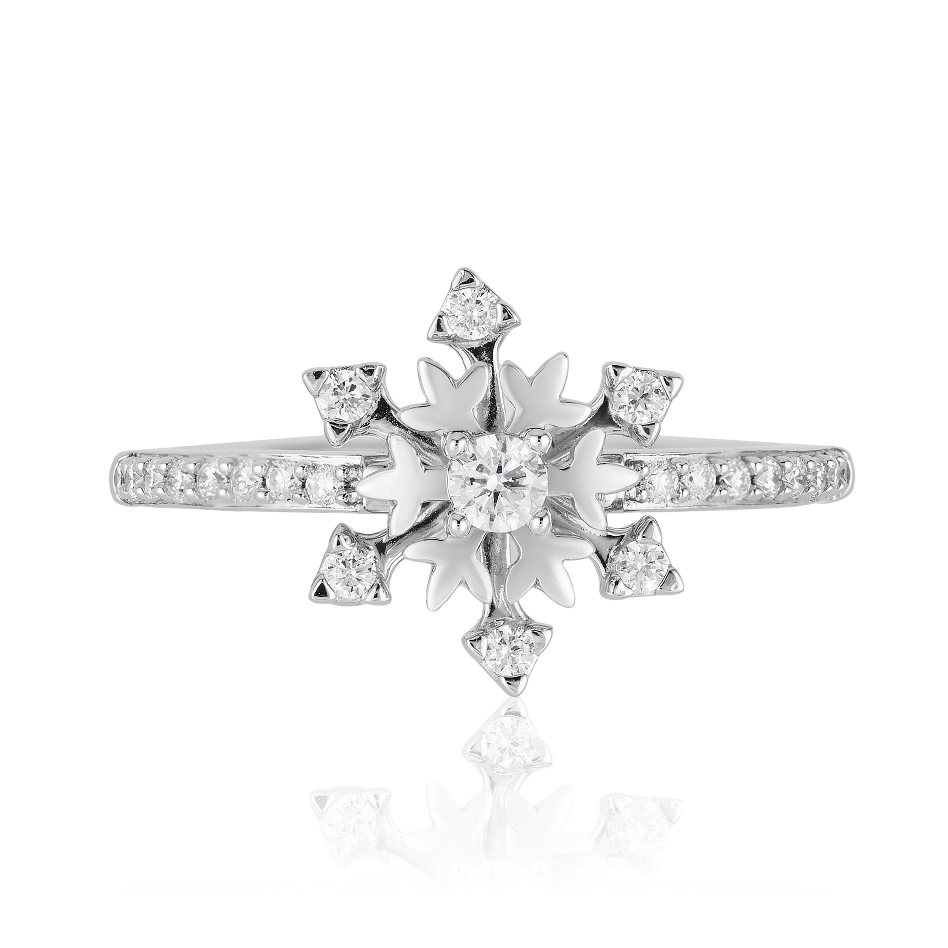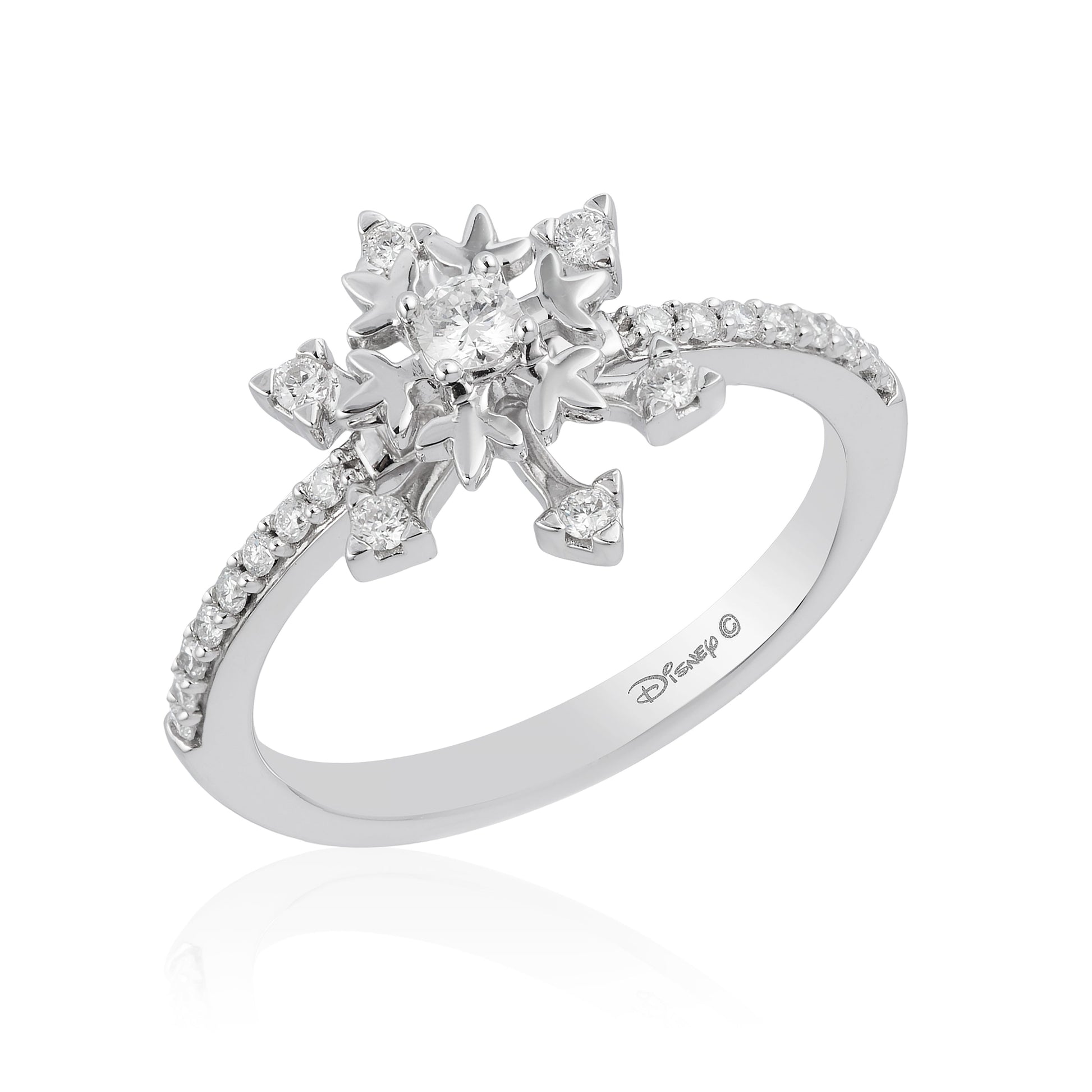 14K White Gold Elsa Snowflake Ring with 1/4 cttw DiamondsDo you see and feel something familiar? Like a dream you can reach but not quite hold? This snowflake ring appeals to you because you share Elsa's sense of perseverance and you recognize the snowflake as a symbol of individual perfection. Wear this diamond-adorned snowflake ring on your finger and be it an everyday reminder for you to let it all go, show yourself and let the world see who you are.