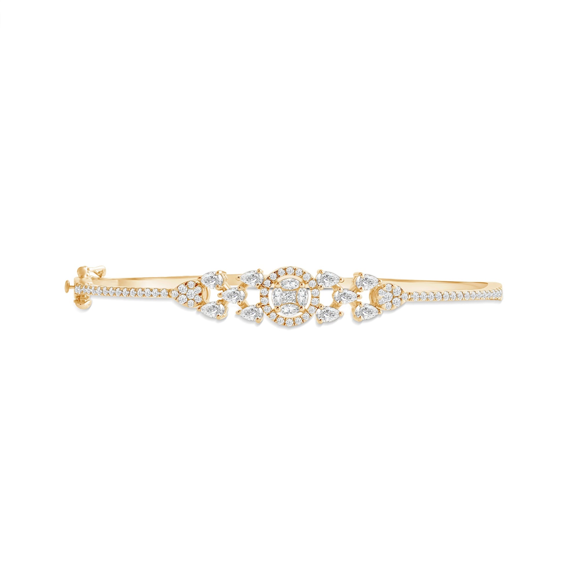 Exuding a poetic song of textures and tones, the Seraphine Leora Bracelet is a classic. The gleaming white gold band showcases sophistication, while the close-set floral diamond at its heart blooms like a moonlit flower.