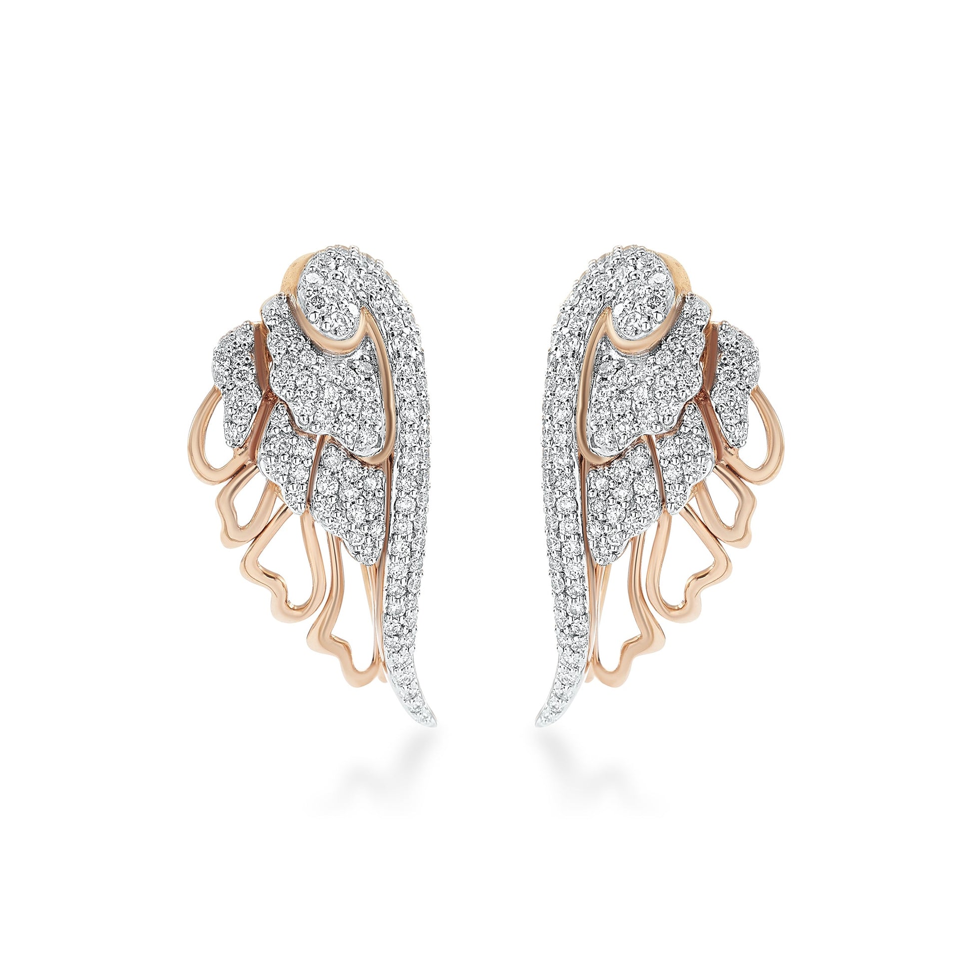 Like a beautiful alter or an intricately carved wooden harp, these pair of earrings are shaped as a butterfly's sole feather. Winged and fabulous, set with Diamonds in Gold, the Arabella Earrings are one of a kind.