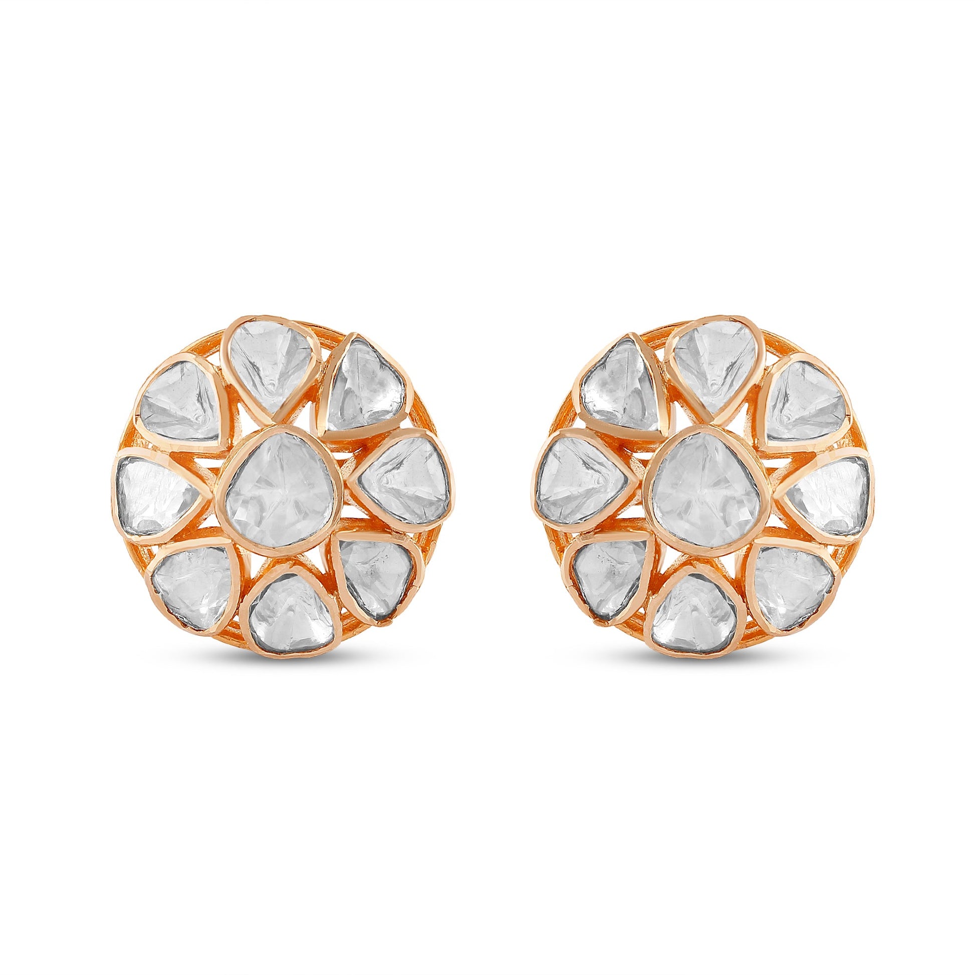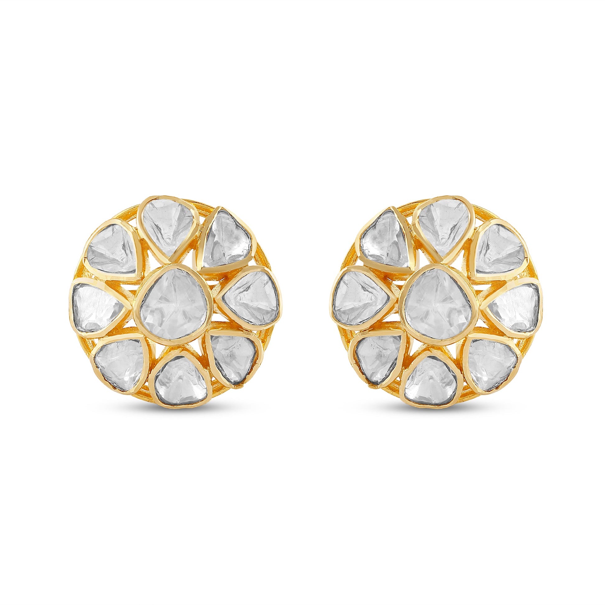 Count on these Solareum Earrings to make an ethereal impression. Each stud is meticulously crafted in luminous yellow gold, embracing a radiant cluster of uncut diamond polki-style stones. Their soft, natural shimmer evokes a poetic touch of royal jewels.
