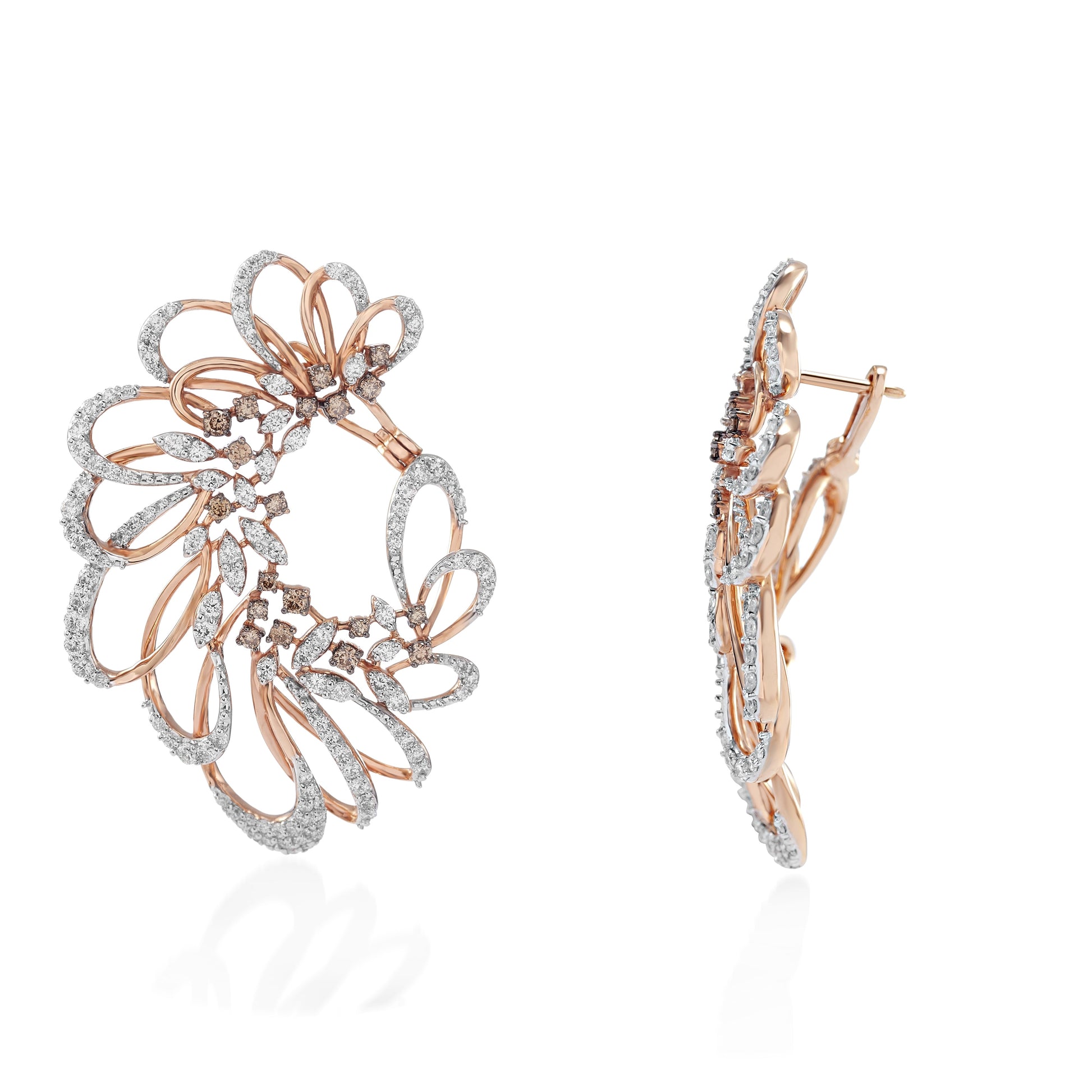Ruffled up feathers, ornate with Diamonds and Gold, belonging to a little birdie, soon to fly like a lone star in the sky. The jumbled starlit hoops and loops remind the wearer of their beginnings, their ruffled feather before they took their first flight. Avelot means bird.