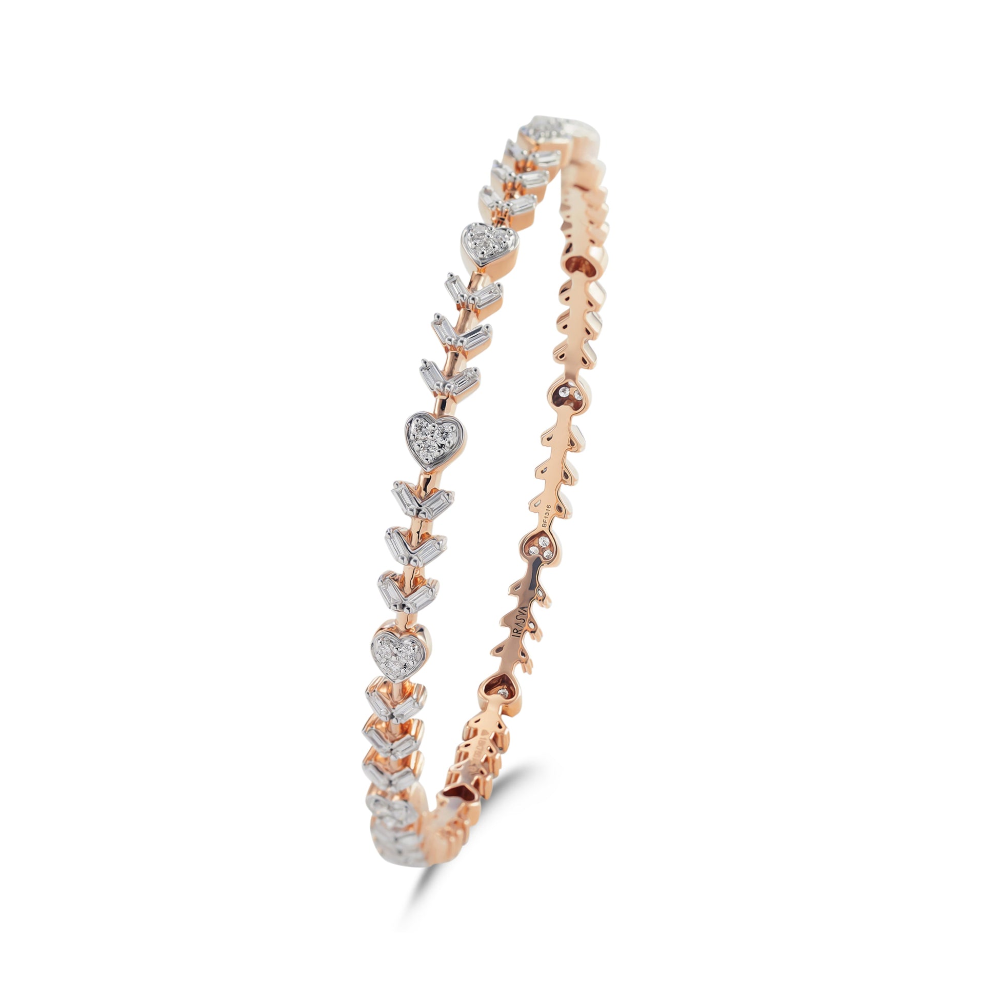 Resembling little hearts or the leaves of wild shamrocks, tiny Diamonds are set in Gold in this exquisite piece of jewellery. Bringing nature into art, this bangle lets the wearer know of the irresistible allure of the wild. This gorgeous piece is named Thea, after the Greek Goddess of light.