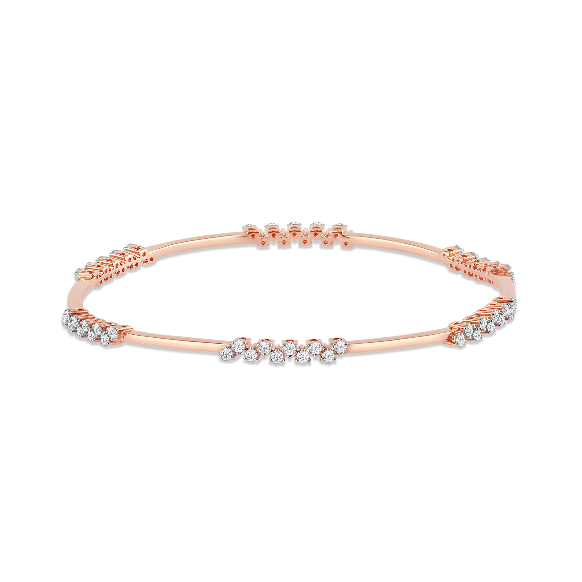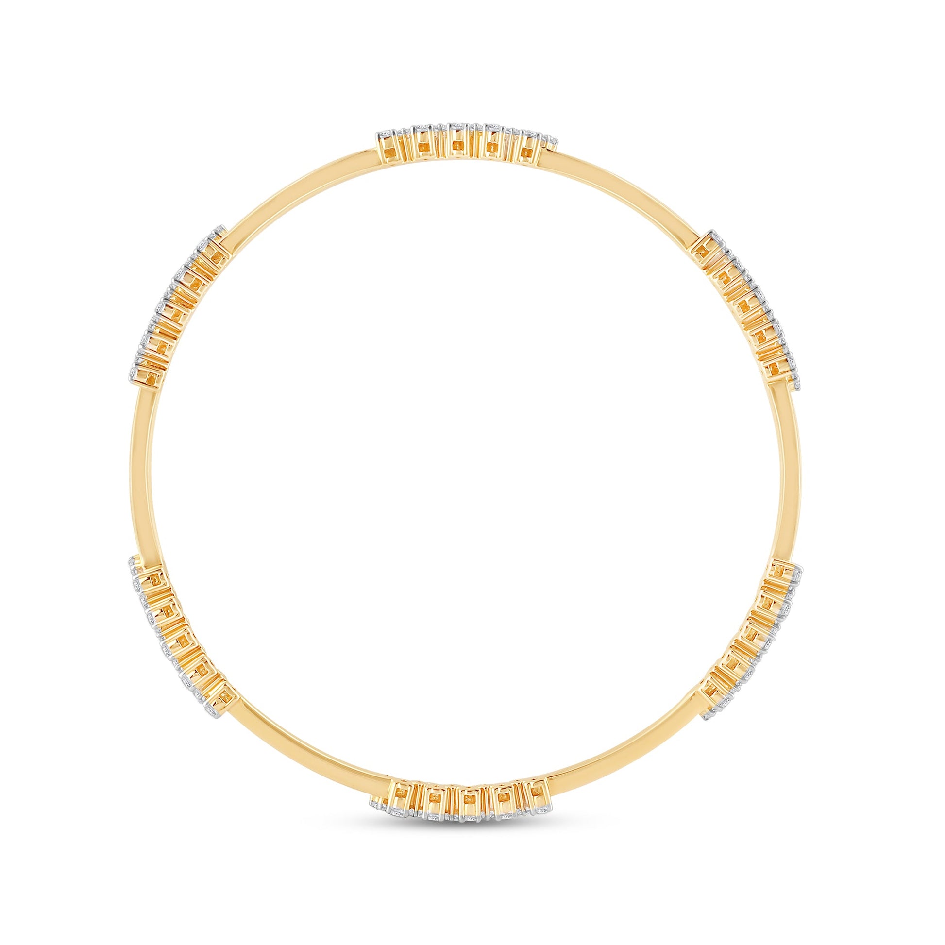 The Vianne Leora Bangle is crafted in luminous yellow gold. Its slender form is accented with delicate clusters of round-cut diamonds — arranged like pauses in poetry, spaced with intention and elegance. A subtle interplay of light and form, this piece evokes a sense of refined fluidity.